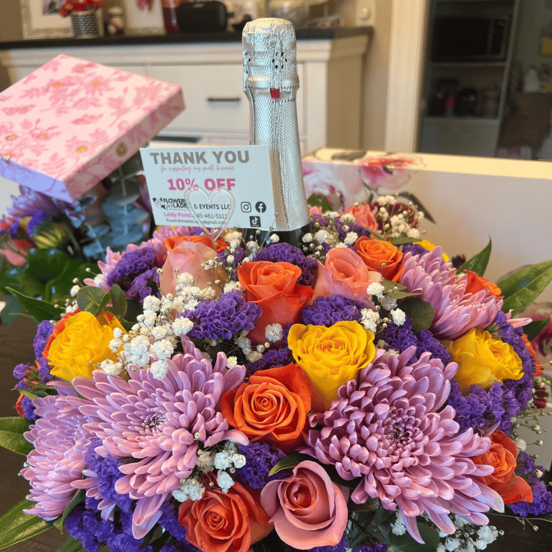 Seasonal Colors with Wine is the perfect way to celebrate a new beginning. Crafted in a vibrant box filled with the lively colors of the season, this arrangement includes a fine bottle of wine—ready to be shared and enjoyed. The combination of bright hues and exquisite wine sets the stage for a memorable experience, whether it’s the start of a new relationship, a fresh chapter, or simply a moment of joy.
